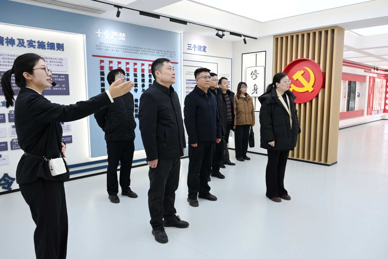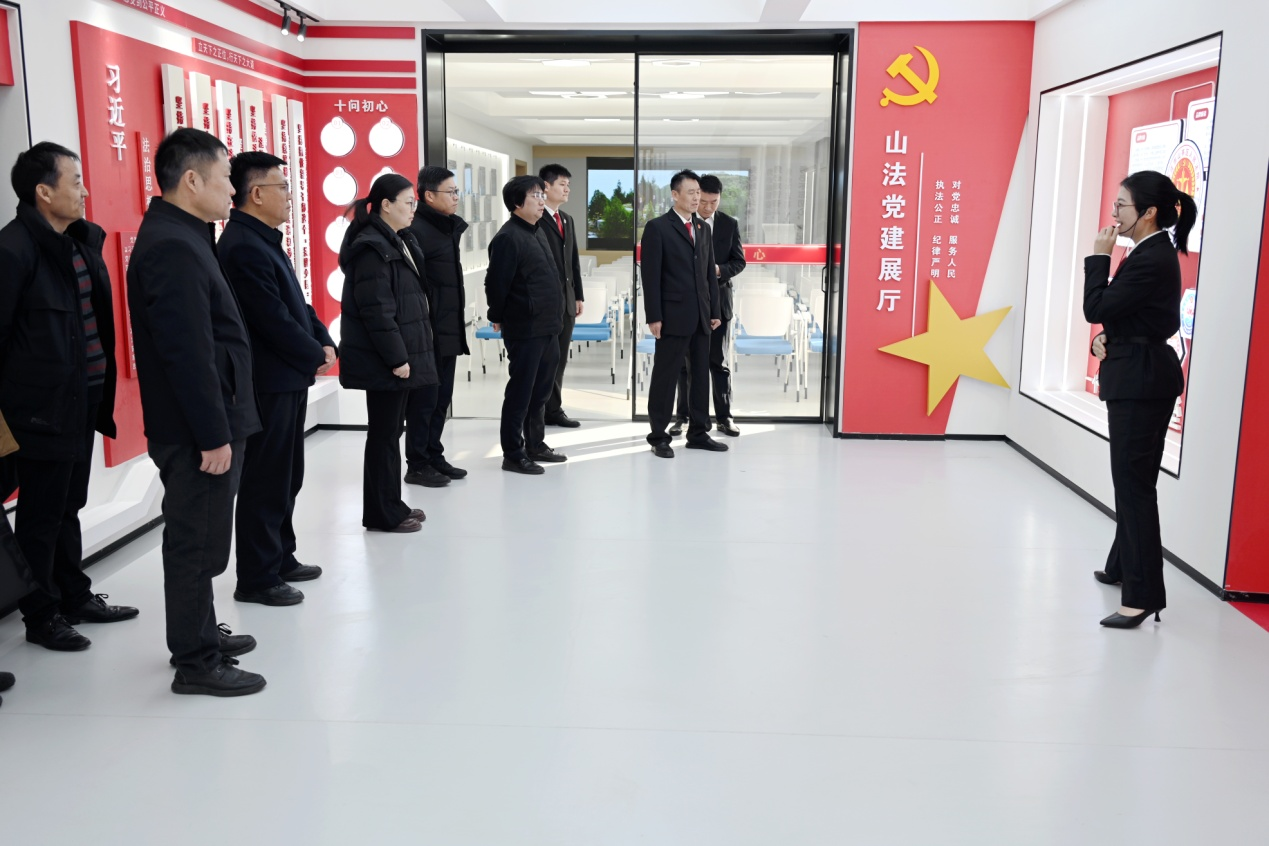 考察团一行实地参观了山亭法院党建展厅与廉洁文化展厅。通过仔细观看展厅内的图文资料、实物陈列及数字化展示内容,调研团队全面了解了山亭法院在党建引领司法工作、廉政文化建设、法治精神培育等方面的创新举措与显著成效。考察团对山亭法院将党建工作与审判业务深度融合、以廉洁文化涵养司法公信力的做法给予高度评价。